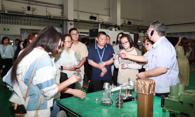 在首钢技师学院,学员考察了世界技能大赛云计算项目国家集训基地、世界技能大赛焊接项目基地、智能装配工作室,了解了北京冬奥发展冰雪运动项目专业的教师建设及教学实训内容。参观结束后,首钢技师学院副院长孙继伶及相关负责人与学员们开展交流座谈。双方就人才培养模式、校企合作、课程建设、创新产业模式,深化贯通融合等方面进行了深入探讨。